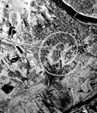 p023286 Déportation et Shoah - Camp de concentration de Linz : vue aérienne des bombardements sur le camp. cliquez pour accéder à sa fiche détaillée
