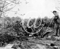 Déportation et Shoah - Camp de concentration de Lochtum -170205 Un vieux civil se tient avec sa pelle au bord d'un trou dans les environ du camp.